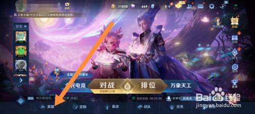 進(jìn)入王者榮耀游戲頁(yè)面,點(diǎn)擊下面的英雄選項(xiàng)。