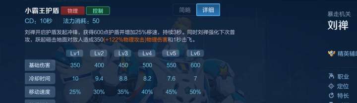 他的一技能小霸王護盾,開啟后獲得護盾向前沖鋒,普攻對目標造成暈眩和1秒擊飛,暈眩效果對防御塔同樣適用,會對防御塔造成1秒暈眩。