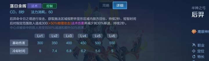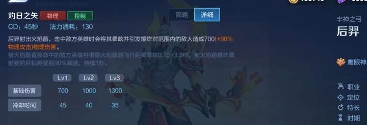 他的三技能灼日之矢,射出一個火焰箭,命中敵人按照飛行距離長短造成暈眩時間長短,最長可暈眩3.5秒。