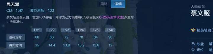她的一技能思無邪,可以為己方英雄回復持續3秒的生命