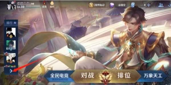 另一種方法是,進(jìn)入游戲后,點(diǎn)擊左側(cè)的排名欄。
