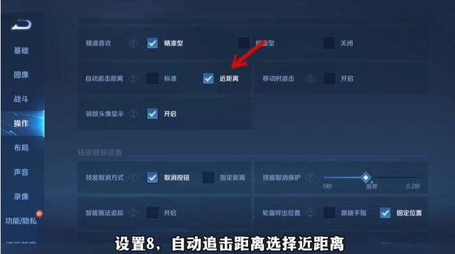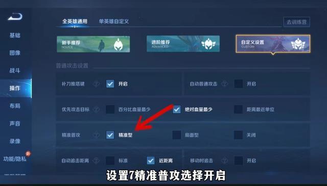 設(shè)置7.精準(zhǔn)普攻選擇開啟,主要是針對一些手長的射手法師,這樣可以拖動普攻選擇遠(yuǎn)處的目標(biāo),進(jìn)行精準(zhǔn)補(bǔ)刀,如果是近戰(zhàn)英雄就選擇關(guān)閉,不然會很影響輸出!