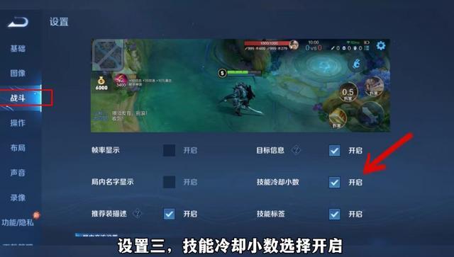 設(shè)置3.技能冷卻小數(shù)選擇開啟,這樣我們的技能冷卻時間會更加精準(zhǔn),可以掐準(zhǔn)技能時間進(jìn)場,很多時候就是因為零點幾秒的時間,導(dǎo)致技能沒放出來,非常可惜!