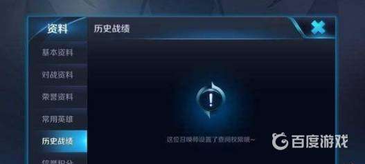 3、這時侯如果別人點擊你的歷史戰(zhàn)績就會顯示“這位召喚師設(shè)置了查閱權(quán)限”。