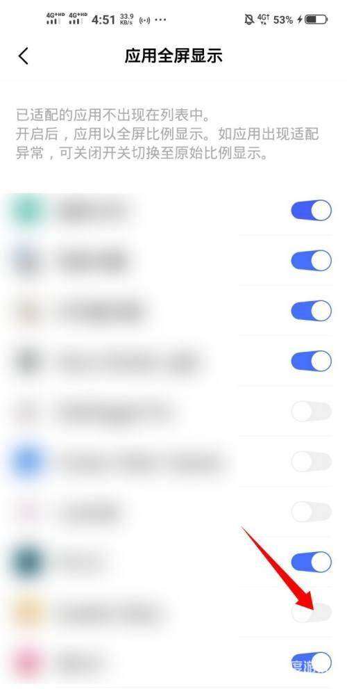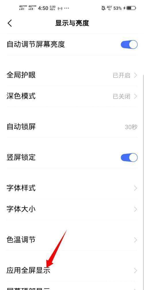 2、點擊“應用全屏顯示”選項。
