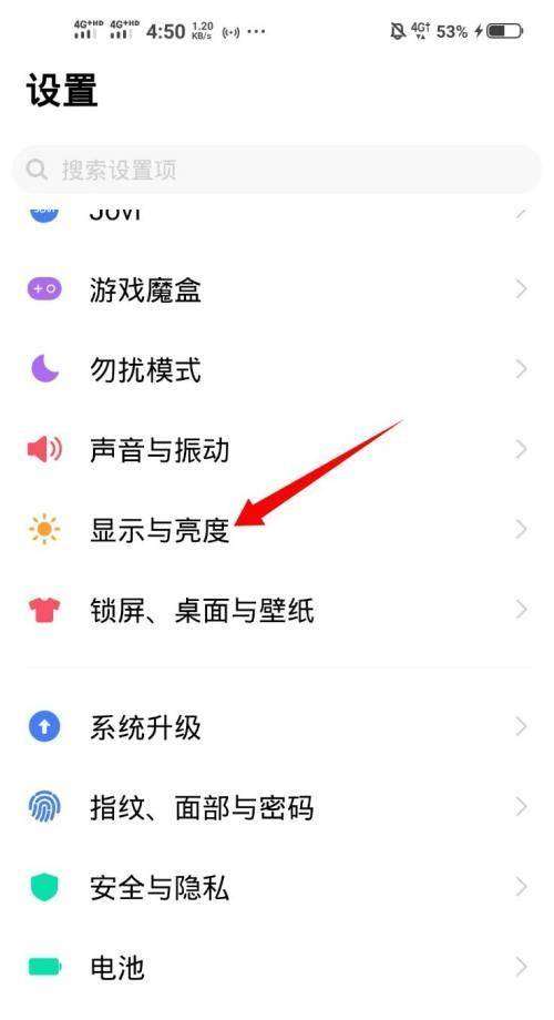 1、打開手機的設置,點擊“顯示與亮度”。