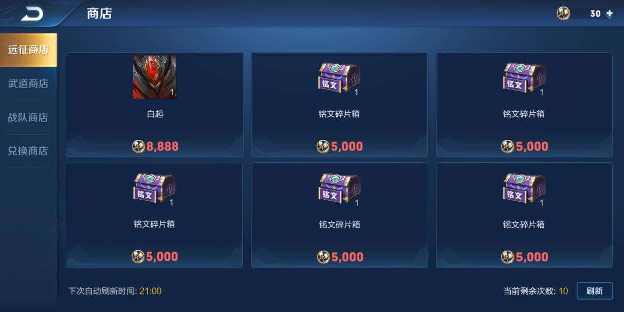 遠征商店,我們通過遠征幣可以購買箱子,每天可以獲得360遠征幣,一共需要14天便可兌換一個500銘文碎片的箱。