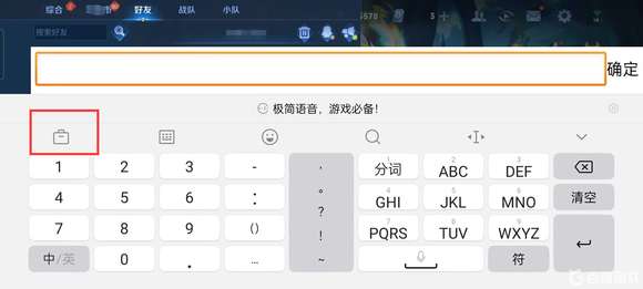 1、在王者榮耀中點開任意打字界面,在打字鍵盤點擊左邊的公文包標識。