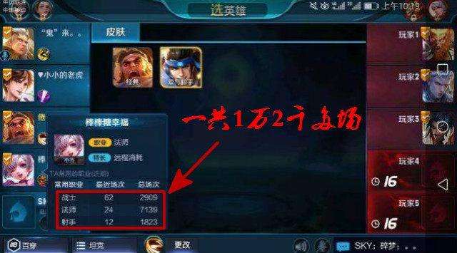 接著再來看看一下第二位玩家的場次截圖,法師類英雄總場次7139局,戰士類英雄2909局,射手類英雄1823局,這些場次加起來的話差不多有1萬2千多場,實在是讓人佩服。