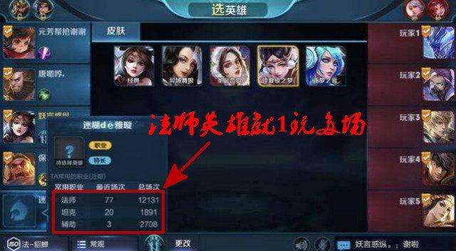 本以為上面的玩家場次已經很多,可等第三位玩家曬出截圖的時候更讓人佩服,其中法師類英雄總場次12131局,坦克類英雄1891局,輔助類英雄2708局,可謂是一個不折不扣的老玩家。