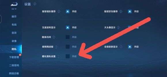 4、點擊“贈禮隱私設置”即可,點亮是開啟,不亮則默認關閉,如下圖所示。