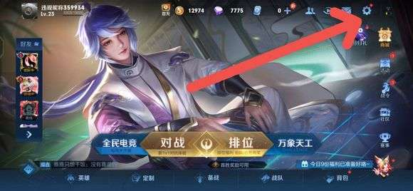 2、進入游戲主頁面之后,點擊設置齒輪進入。