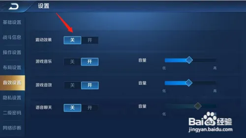 5、王者榮耀震動哪里關?我們在王者榮耀界面,點擊右上角的設置進入。 我們在設置界面,點擊左側的音效設置。 我們找到震動效果,點擊關閉。 我們確認開關在關閉的位置上。