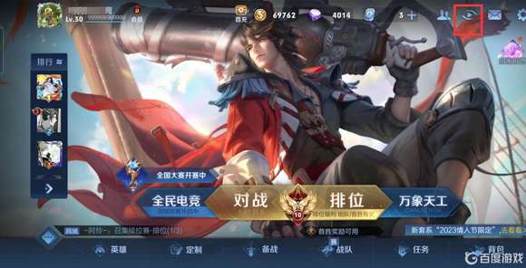 1、在王者榮耀首頁點擊頂部的眼睛圖標。