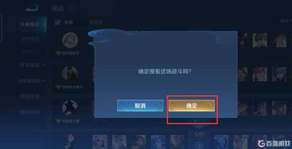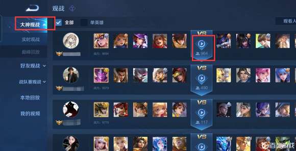 2、選擇大神觀戰、好友觀戰、戰隊賽觀戰,點擊要觀戰的對局。