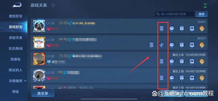 首先來到游戲好友界面,點擊那個垃圾桶圖標,并且確認刪除提示,就能將游戲好友刪除。如果將其刪除之后,還是能夠在游戲好友列表中看見的話,就說明你還關注著這名游戲好友。