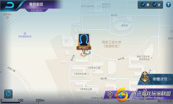 在榮耀戰區的界面下方我們會看到我的街區,點擊進入之后地圖將會縮小到一個街區,街區左邊會有街區評選,在評選頁面你就能選擇自己所在的街區學校和公寓,也會精準到某棟樓,修改人物之后點擊開始評選。如果你的榮耀戰力足夠高就會成為該地區的第一XX。怎么樣,是不是很裝逼!牛X的人生之路從此開始,麻煩樓下的渣渣把腳收一下(得意的眼神)。