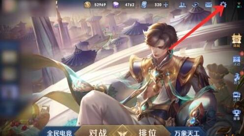 1.打開王者榮耀,進入游戲主頁面,點擊右上角設置。