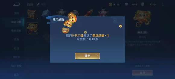 其二:好友每贈送一款皮膚,贈送方會獲得10點親密度(PS:無上限),接收方必須領取了這款皮膚才能獲得10點親密度,如果沒有領取的話就會比贈送方少10點親密度。