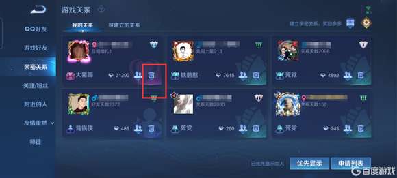 第二個辦法:直接通過好友列表中將好友刪掉,這樣的話會強制解除親密關系,但是也會將親密度清空。