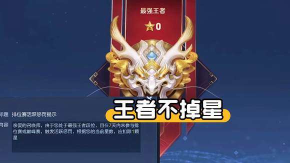 在正式服,玩家的排位賽達到王者段位之后,如果七天內沒有參加排位賽或者巔峰賽,就會扣除一顆星星。