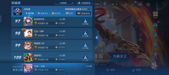 王者段位榜自己沒在榜上怎么回事