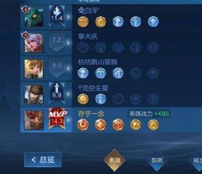 最后、點開表現后,就會出現戰力加了多少這個是此英雄在本局結束后加的分,包括勝戰戰力、排位表現戰力、活躍系數,如果玩家是去打巔峰賽的,那么就會顯示巔峰表現戰力和巔峰系數了。最上面的英雄戰力( 數字)就是本局提升的戰力。