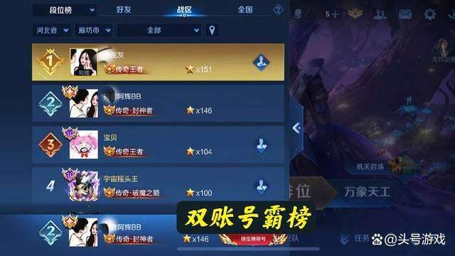 雖然說現在王者榮耀分為了排位賽和巔峰賽,很多的小伙伴到達王者段位之后,就開始去打巔峰賽,巔峰賽的排名更能夠證明玩家的實力。仍然有一部分玩家,就想要提升自己的段位星數,不想去打巔峰賽,并且王者榮耀還推出了段位排行榜,實際上,和巔峰賽類似,也有全國排名和市級排名,省級排名等等,如果你的段位比較高,就可以出現在排名中,并且段位排名比較靠前的話,還可以拿到專屬的稱號。