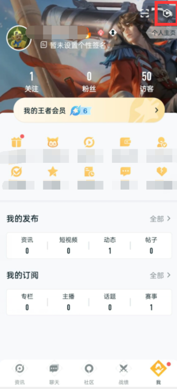 首先,在王者營地首頁找到右上角的設置圖標并點擊進入。