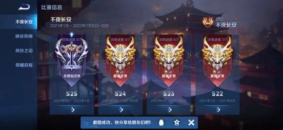 2)點(diǎn)擊左下角榮耀記錄—比賽信息就能查看各個(gè)賽季的歷史戰(zhàn)績了