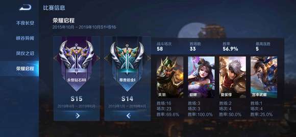 1)榮耀啟程:包括s1-s16十六個(gè)賽季,自2015年10月至2019年10月