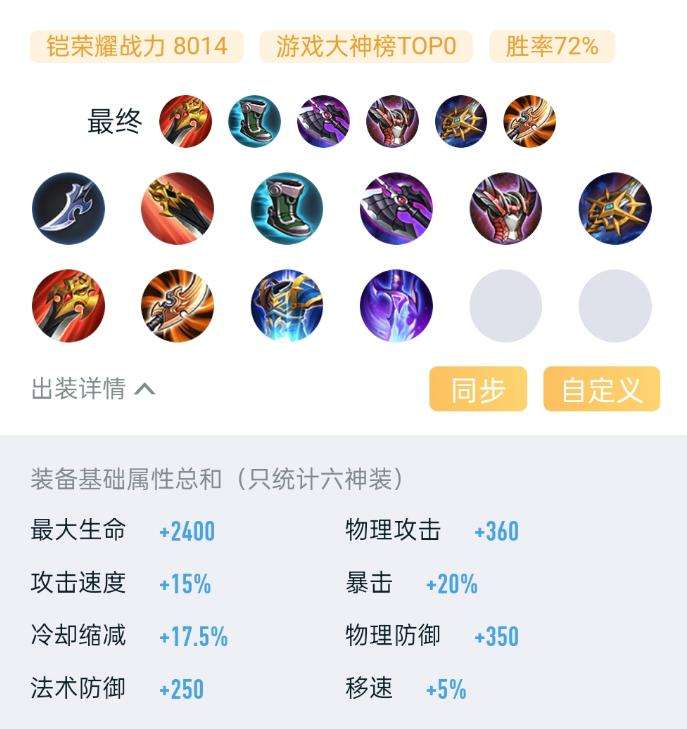 大神玩家針對鎧 “怕法傷、切后排難、后期弱” 的痛點,開發(fā)出這套 **“破魔抗傷 + 一刀爆發(fā)”的黑科技玩法!用破魔刀 ** 堆 400 + 法抗,暗影戰(zhàn)斧+宗師之力拉滿爆發(fā),反傷刺甲防刺客,貪婪之噬提移速,鎧直接化身 “法傷克星”,敵方法師見了就發(fā)抖!