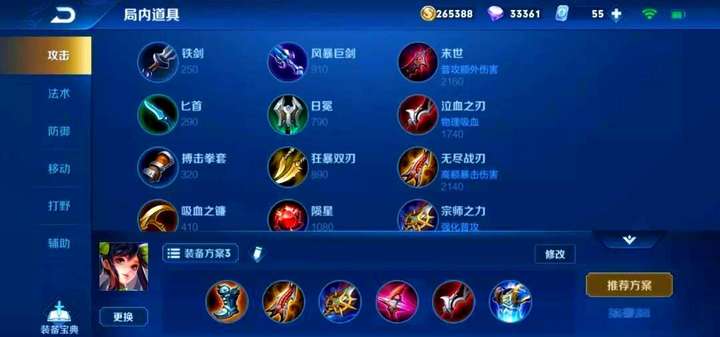 至于最后一件裝備,則可根據(jù)實(shí)際情況選擇復(fù)活甲、名刀或破軍,以增強(qiáng)其生存能力或輸出能力。