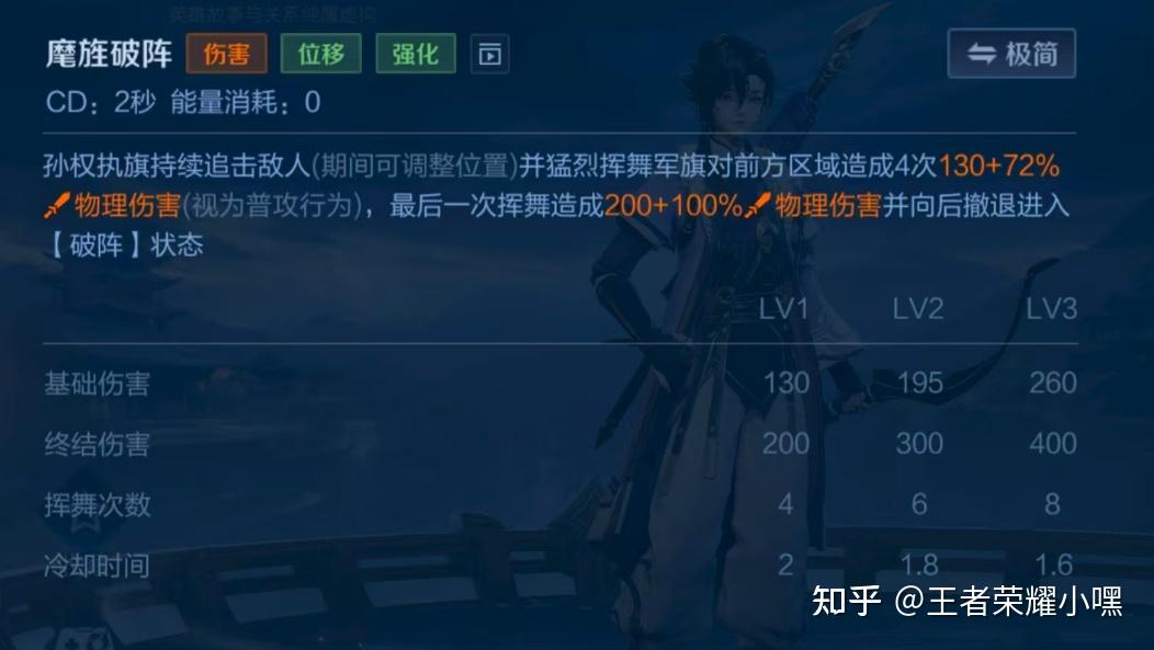 大招是孫權絕對的核心技能,不僅可以多次觸發法球傷害,打出高爆發,而且可以開啟破陣狀態,強化一二技能,其中尤其是破陣狀態下的一技能打團十分關鍵,有出色的戰場分割能力,aoe傷害,以及可以快速疊層,再次釋放大招。