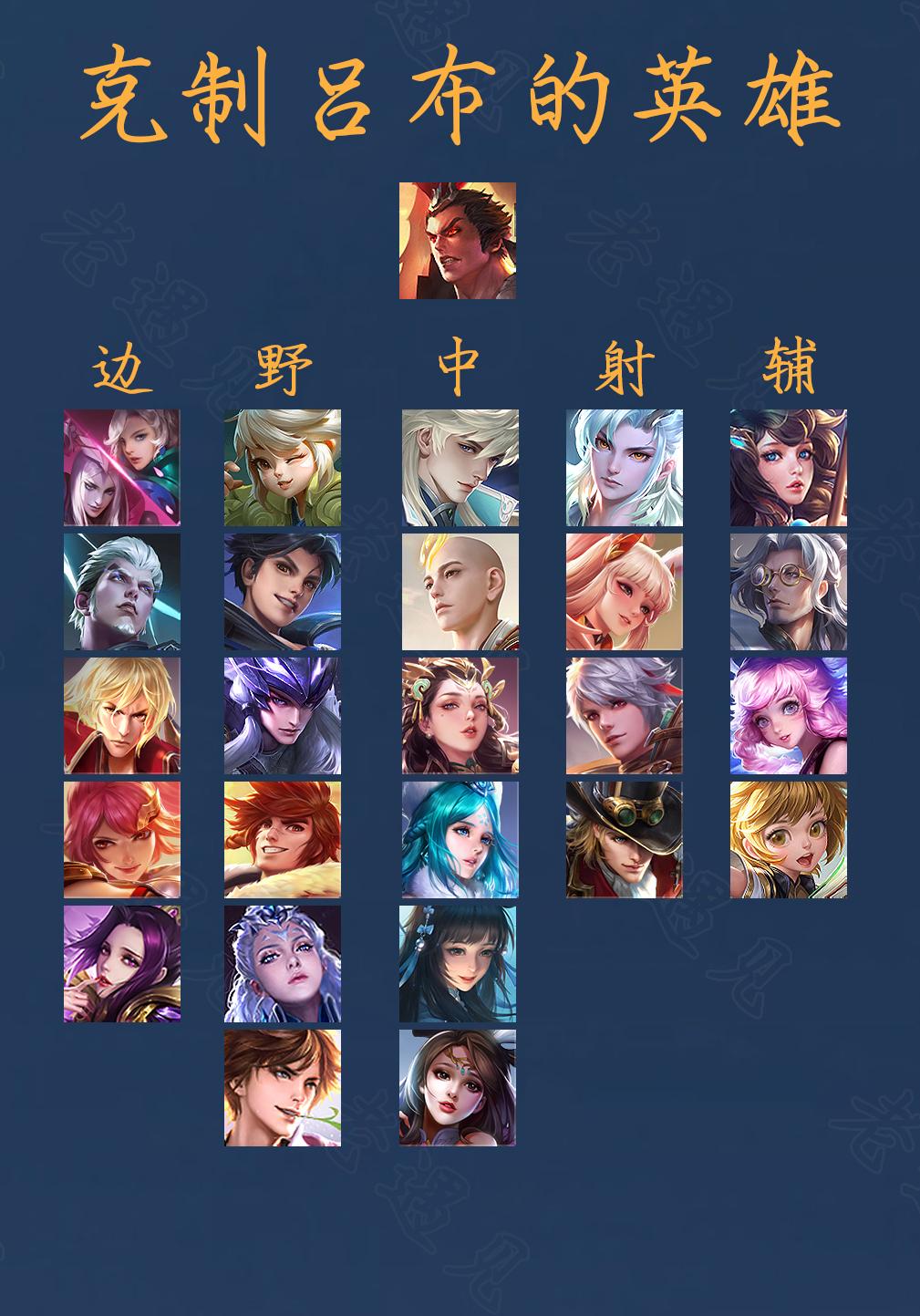 這里面一些前期強勢的打野會更加好用,比如裴擒虎,或者是中期強勢的露娜也可以,在呂布到達強勢期之前打出優勢,盡快結束游戲會更好。
