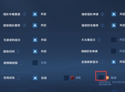 王者榮耀隱身功能一周之內只能夠使用五次(剛上線時為三次,后更改為五次,便于一周的五個工作日都可以開啟隱身功能),每日第一次使用隱身功能時將消耗使用次數,使用后可持續至次日凌晨五點的時間內,注意:當天使用隱身功能后,取消再隱身并重復使用該功能不再消耗次數。玩家們一周內最多可以隱身五天,而剩下的兩天則無法再使用隱身功能。