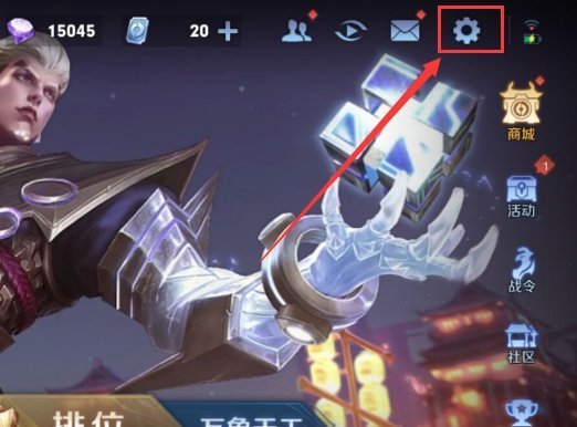 一、進入王者榮耀大廳界面,點擊右上角“設置圖標”。
