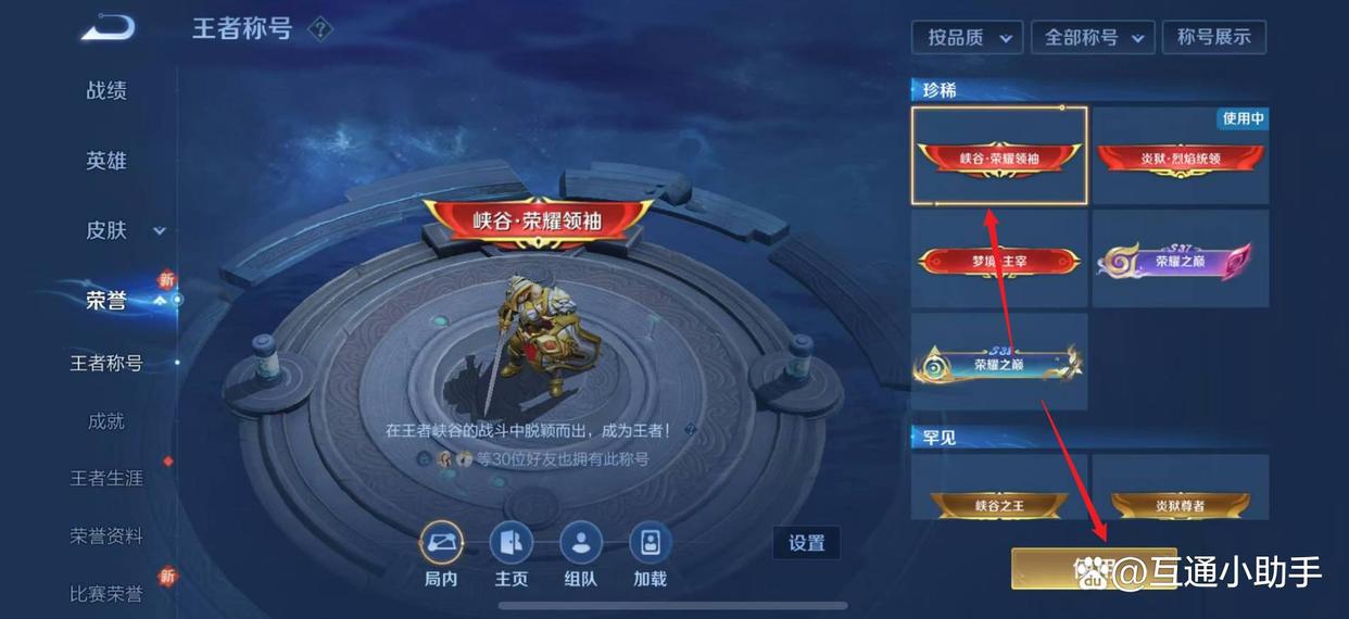 3、進入到王者稱號頁面,選擇要使用的榮譽稱號,點擊“使用”,進行保存。