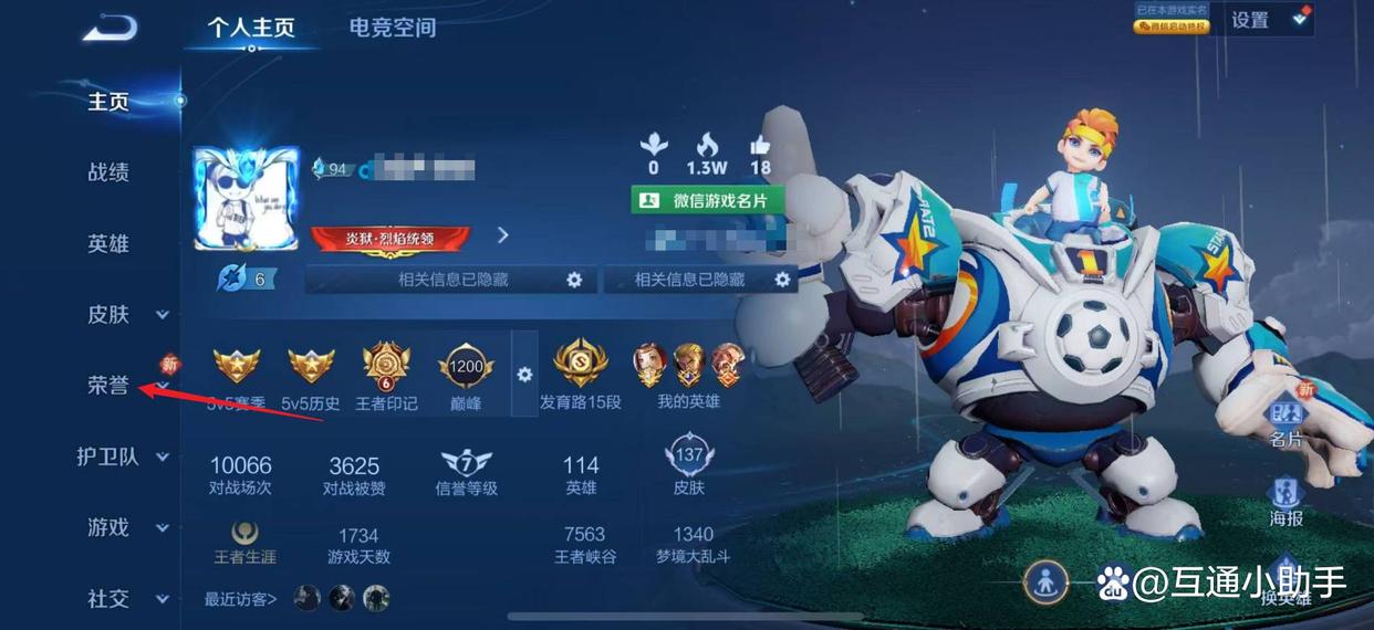 2、進入到個人主頁頁面,點擊“榮譽”。