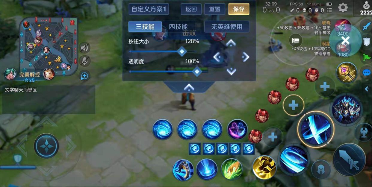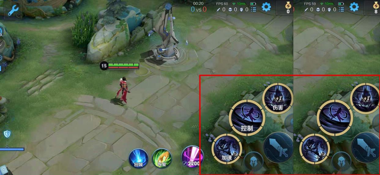 另外在布局這一版塊中,最上面有個局內按鍵自定義。這個功能進入之后,我們可以調整每個技能和狀態按鍵的顯示大小,如下面的對比圖。根據自己的需求,可以把各個按鍵調整到自己舒服的大小和位置,更能保證對局的勝率。